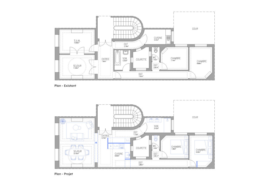 INTERVENTION : Réaménagement intérieur d’un RDC de 50m²